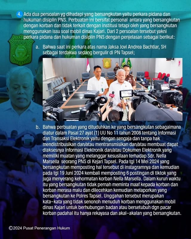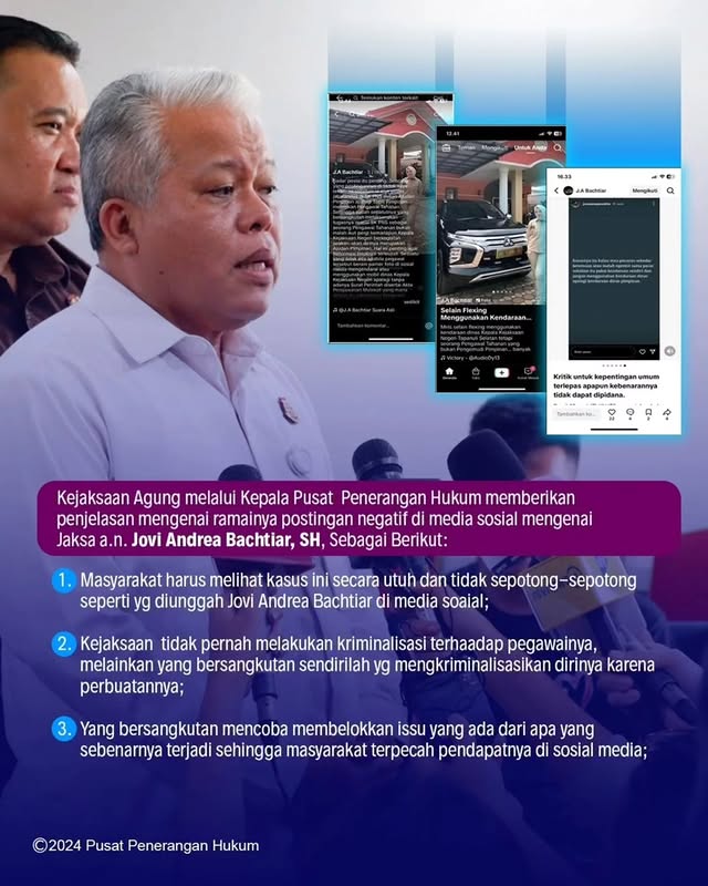 Kejaksaan Agung melalui Kepala Pusat Penerangan Hukum memberikan penjelasan mengenai ramainya postingan negatif di media sosial mengenai Jaksa a.n. Jovi Andrea Bachtiar, S.H.
