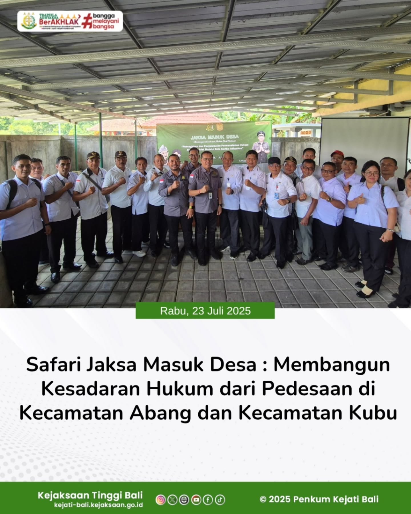 bertempat di Kantor Camat Abang Karangasem, telah berlangsung kegiatan Safari Jaksa Masuk Desa, yang bertema “Pencegahan dan Penyelesaian Permasalahan